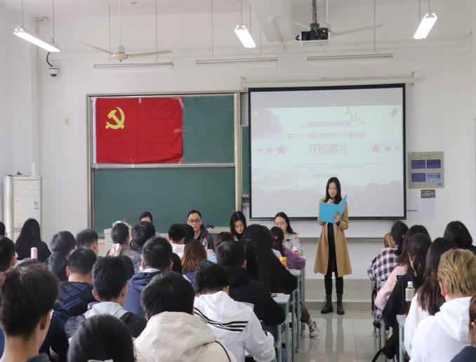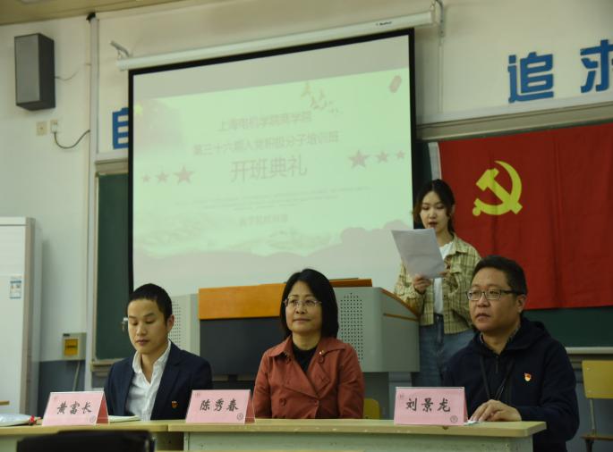 4月16日中午12时30分,商学院第36期入党积极分子培训班于闵行、临港两个校区同时开班。商学院党委书记项军,党委副书记、副院长陈秀春,专职组职员孙慧,第一党支部书记刘芳,第七党支部书记胡文,第八党支部书记刘景龙及第九党支部组织委员黄富长分校区出席了本次开班仪式。
