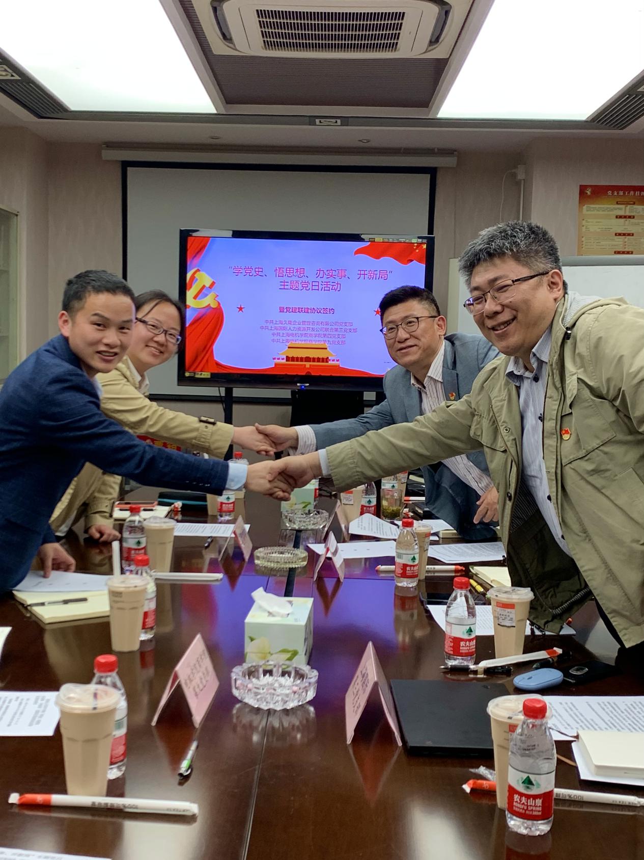4月23日,商学院党委第四党支部、第九党支部应邀赴上海久隆企业管理咨询有限公司,与久隆企业管理咨询有限公司党支部、上海国际人力资源开发公司联合第三党支部开展共建活动,共同举办“学党史、悟思想、办实事、开新局”主题党日。