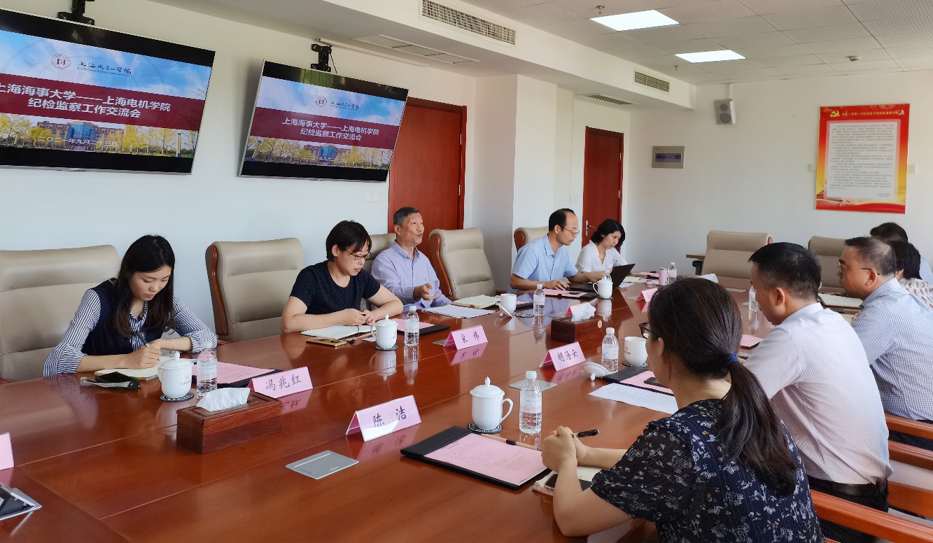 9月23日下午,上海海事大学党委副书记、纪委书记(监察专员)严大龙带领上海海事大学纪委(监察专员办公室)同仁一行五人来我校进行工作交流,我校党委副书记、纪委书记(监察专员)陈信在临港校区行政楼520会议室热情接待了他们。