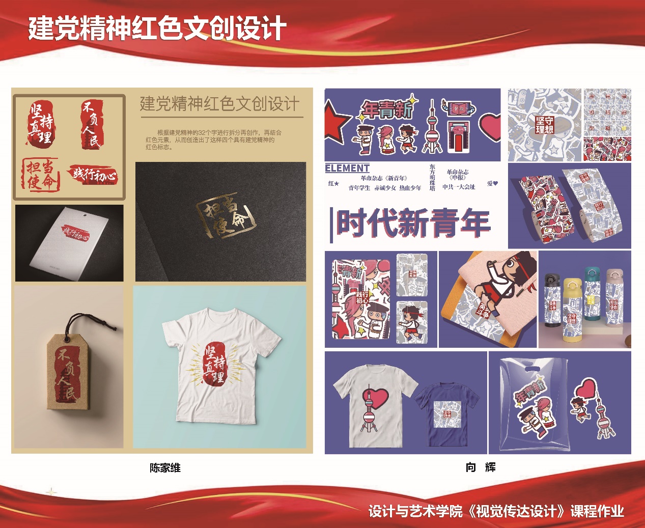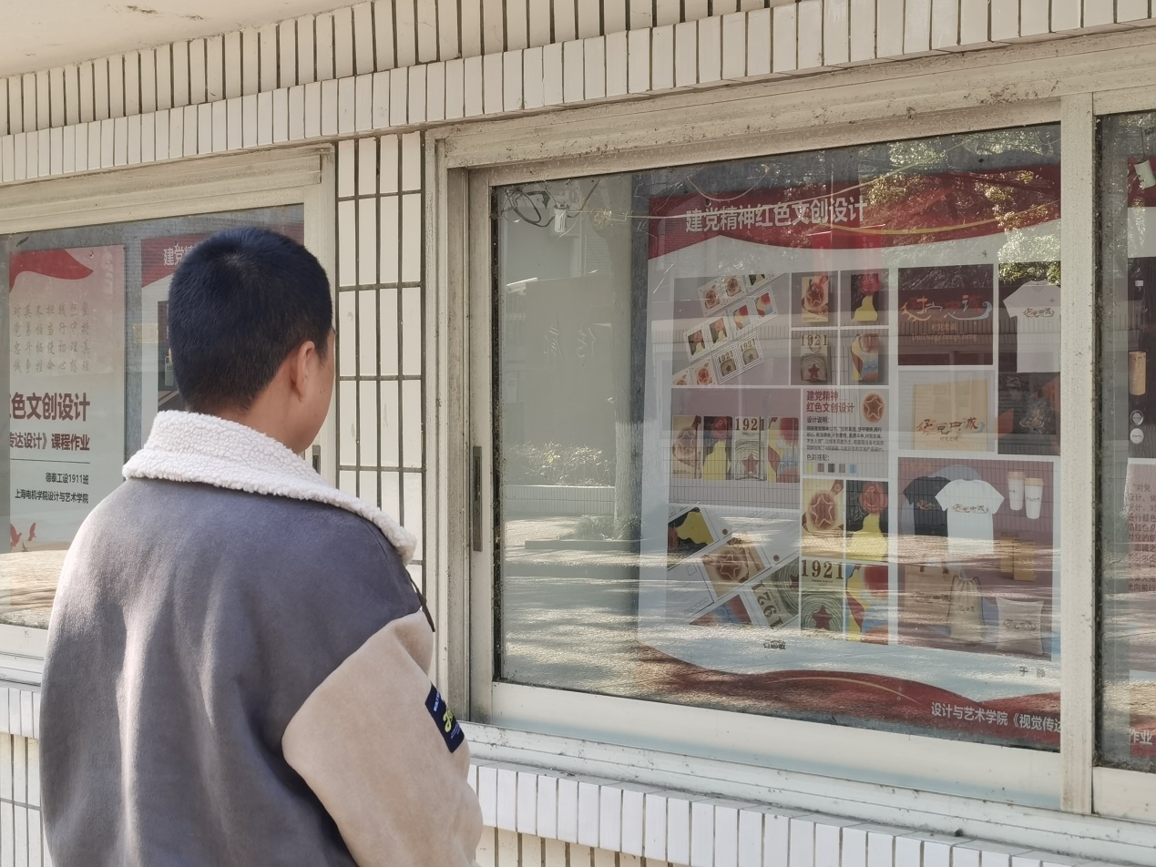 近期,设计与艺术学院结合自身专业特色,以弘扬伟大建党精神为主题,通过举办主题文创设计展,将红色基因融入课程思政建设,引导学生通过设计实践深入学习、领会、践行党的十九届六中全会精神,在闵行校区的校园橱窗里展示出了一块块主题鲜明的课程作业展板和一件件颇具创意的文创作品。