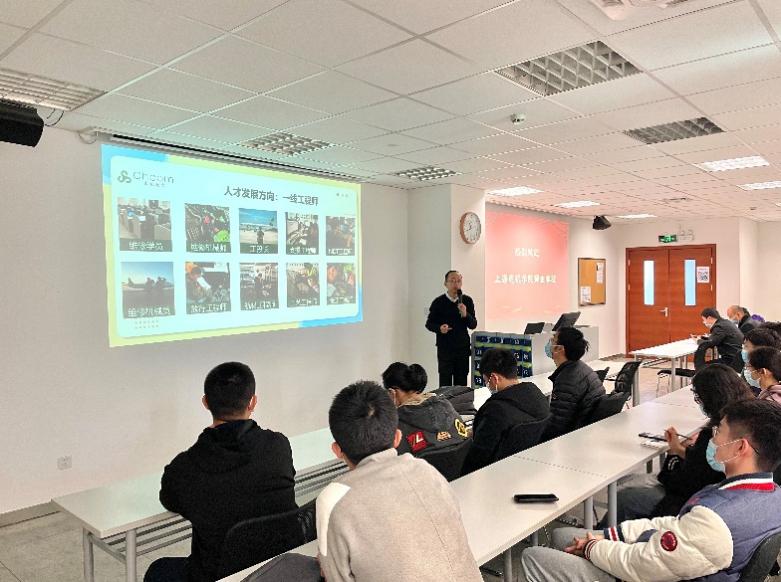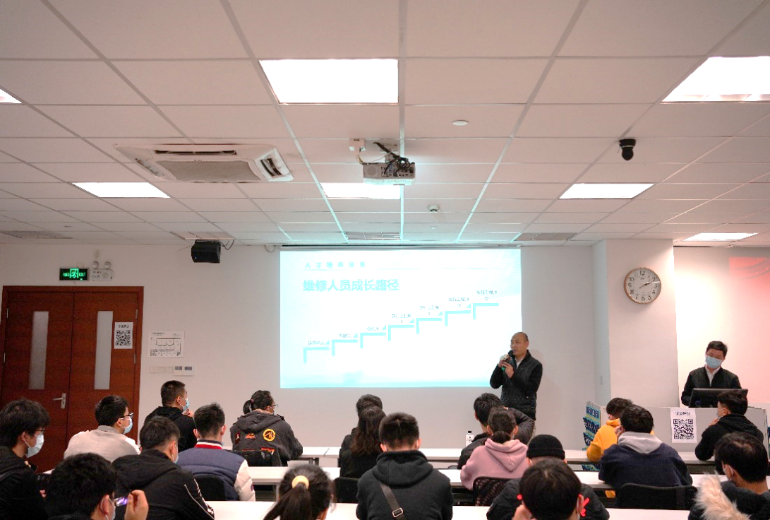 体验活动结束后,春秋航空维修工程部人事培训处经理戴俊为同学们详细解读了春秋航空的薪资待遇、晋升机制、职业发展等内容。同学们对春秋航空提供的职位产生了浓厚兴趣,纷纷就具体工作内容、薪资待遇、应聘条件等与春秋航空人事经理进行了现场交流,并递上了自己的简历。