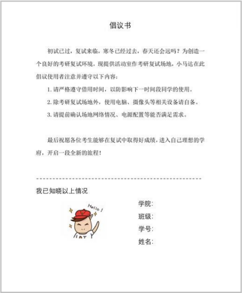 图释2:考研复试场地防疫倡议书