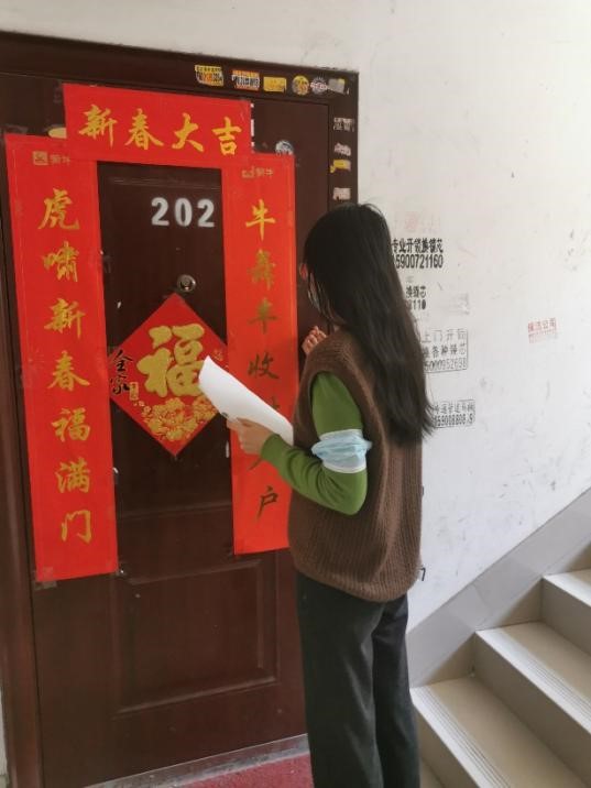 英语1911班雷雨欣:作为小区里的“老居民”,我充分发挥人头熟的优势,主动帮助医护人员确认一个个楼栋需要检测的人数,提醒楼层居民下楼做核酸检测,确保了一户不漏。