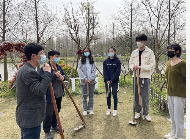 3月27日下午,在学校准封闭管理的特殊时期,为教育引导广大青年学子学习贯彻习近平总书记关于劳模精神、劳动精神、工匠精神的论述,同时为了锻炼同学们的意志,增强吃苦耐劳精神,提升校园准封闭期间的身体素质和心理素质,促进身心全面发展,商学院联合马克思主义学院组织开展了劳动教育教学实践活动。商学院党委书记金辉老师、李畅老师,马克思主义学院副院长刘炳涛教授、武一飞老师,商学院学生代表参加现场劳动教育实践教学活动,马克思主义学院院长范冬姣老师、孙秀丽老师参加线上交流指导活动。