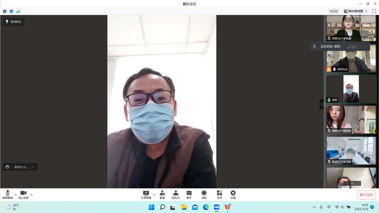 学生会团总支副书记李依淼同学从“疫”起学习、疫情“怡”刻、抗疫有我、以艺战“疫”四个方面,进行了封闭管理期间外国语学院团总支学生分会的工作汇报,详细介绍了疫情期间学生会的各项工作与活动筹备计划,引领青年学子在抗击疫情中勇于担当作为,传承爱国精神,贡献青春力量,助力校园抗疫。
