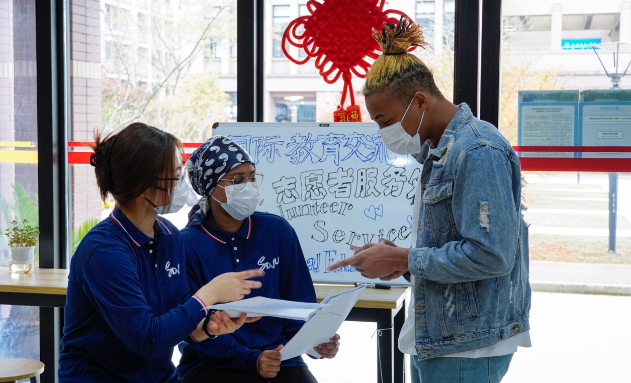 国教中心志愿者服务站为国际学生提供帮助