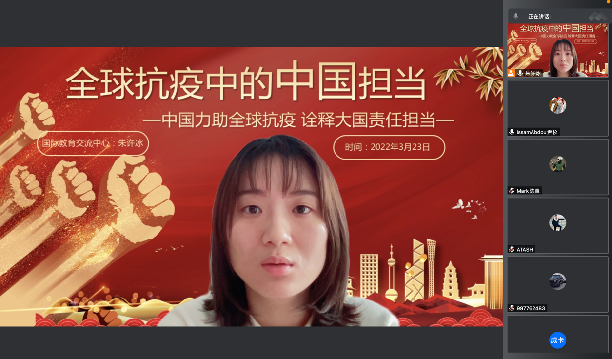 疫情防控是一场大考,同时也是讲好中国故事的鲜活题材,国教中心以“疫”为“材”,将数字化管理模式和人性化的工作方式相结合,在保障国际学生学习和生活的同时,积极创新全方位育人的教育模式,思考开展国情教育、讲好中国故事、传递中国抗疫正能量的新实践。(供稿:国际教育交流中心 朱许冰)