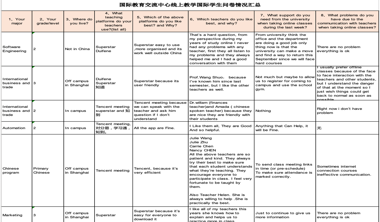 汇总国际学生线上教学情况调查问卷结果