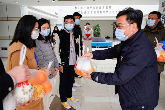 校长龚思怡,副校长杨万枫、王志恒在临港校区行政楼,看望慰问了坚守在工作一线的教职工,对大家值守在各自岗位共同抗疫表示感谢。龚思怡校长指出,学校进入准封闭管理以来,各职能部门教职工勇于担当、迎难而上、不辞辛劳,有条不紊地推进各项工作,切实筑牢了全校师生生命健康的坚实防线,为推动学校各项工作正常有序发挥了坚实的保驾护航作用。