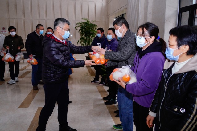 党委书记鲁雄刚、校长龚思怡等校领导还分别走访慰问了各二级学院的在校教职工。鲁雄刚充分肯定了各二级党组织在校园准封闭期间发挥的战斗堡垒作用,特别感谢了大家在二级学院教学和学生管理工作上进行的周密有序的组织和细致认真的部署。龚思怡强调各二级学院在特殊时期要密切关注教职工和学生的思想动态,认真落实准封闭管理期间疫情防控的各项工作要求。