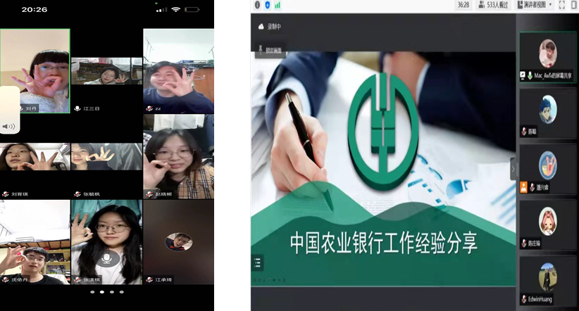 4.开展就业面对面活动。商学院校友、农行上海大团支行个人客户经理夏小波做客“空中讲坛”第15期,与学生交流分享从业心得,鼓励学生积极拓宽就业思路。设计与艺术学院毕业班级班主任与留校学生开展云上面对面就业指导活动,就当前的就业形势进行了重点分析,逐个推荐工作岗位,鼓励毕业班学生积极投递简历,积极应对就业。