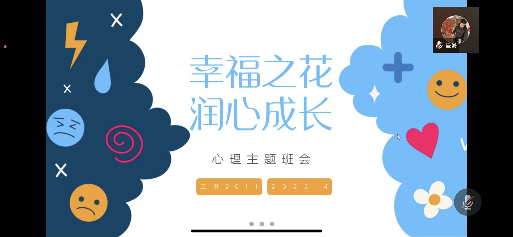 7. 主题班会,心理引导。设计与艺术学院毕业班级班主任与学生开展线上“幸福之花 润心成长”心理主题班会,对学生进行心理引导,传递正能量,并号召同学们在足不出楼的情况下,在寝室自主开展合适的运动。