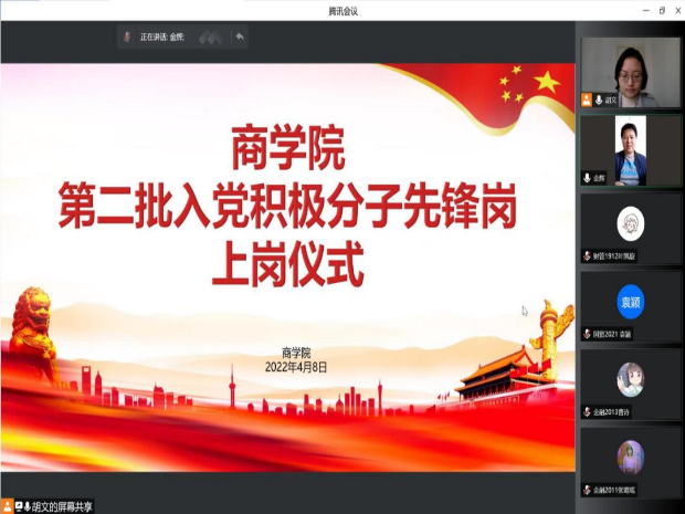 4. 先锋上岗,勇于奉献担当。商学院举办“第二批入党积极分子先锋岗上岗仪式”,鼓励各位积极分子从志愿行动中找到为师生服务的新方式,把具体行动落实在日常生活中的方方面面,在不断的帮扶过程中找到先锋意义所在。