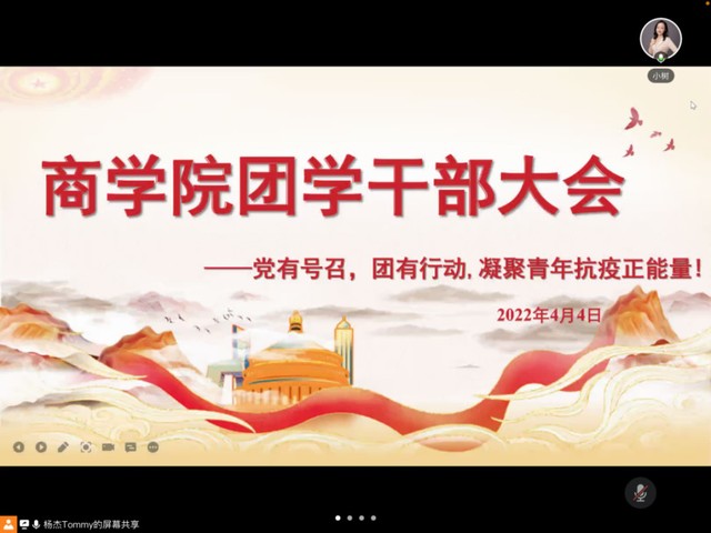 4月4日晚20:00,商学院团总支学生分会组织开展了以“党有号召,团有行动,凝聚青年抗疫力量”为主题的全体团学干部大会。学院党委副书记、副院长沈瑾教授参加,会议由商学院团学工作负责人杨杰老师主持。