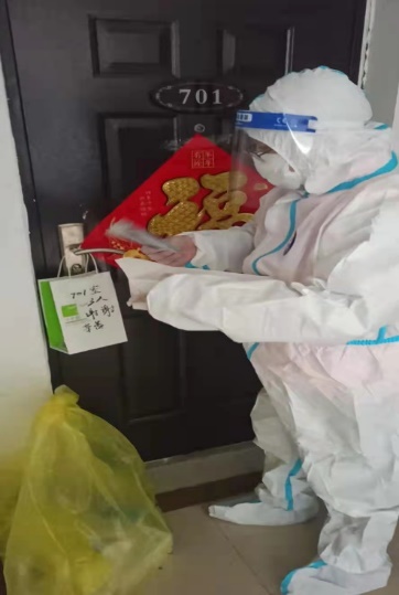 “习惯了为学生服务,但现在回到社区也应就地上岗,为广大居民分忧愁、做实事”。辅导员岳宁作为学校专班工作人员刚刚离校回到社区,就第一时间投入到社区志愿者队伍中。按照居委安排,他带领楼栋志愿者们多次上门收发抗原检测试剂,面对初次检测不懂操作流程的独居老人他总是耐心讲解,消除他们的疑虑和内心抗拒。