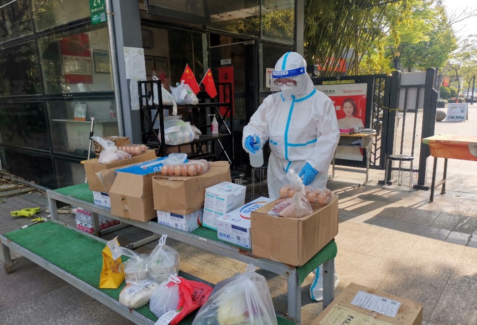 辅导员王海明在社区化身为“快递小哥”,将快递消毒后派送到居民家门口。“团购的物品要确保做好消毒再派送到居民手中,送货服务的最后一公里值得我拿出十分的用心”。