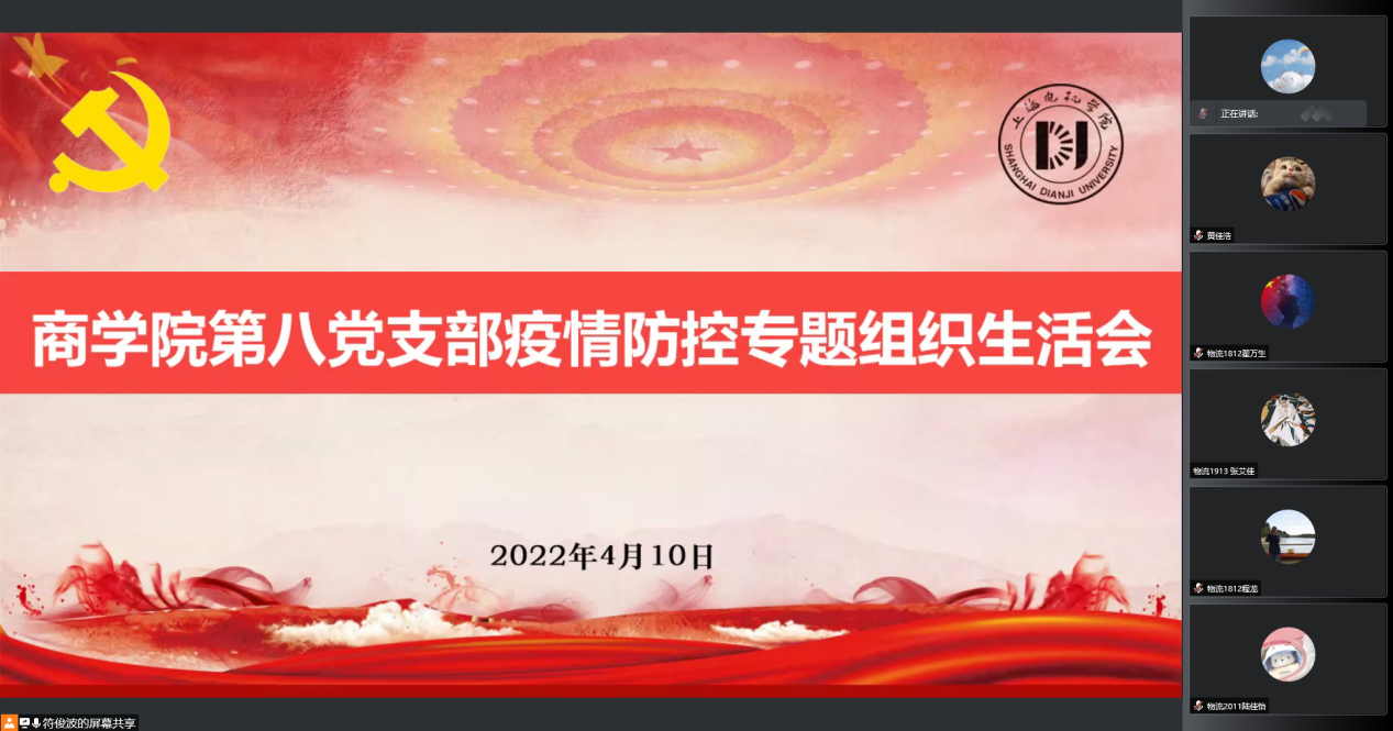 商学院各党支部通过观看视频、文件等多种形式进行了学习。第一党支部张威帆老师分享了自己的专班工作经历,在学校实施准封闭管理后,他第一时间主动申请入校,目前仍驻守在校园里。作为第一批教师党员先锋岗,他深入学生生活园区开设了“空中讲坛”。第六党支部党员就学校进入准封闭管理后个人思想认识和工作实际情况进行了总结。第八党支部积极组建了抗疫先锋队。