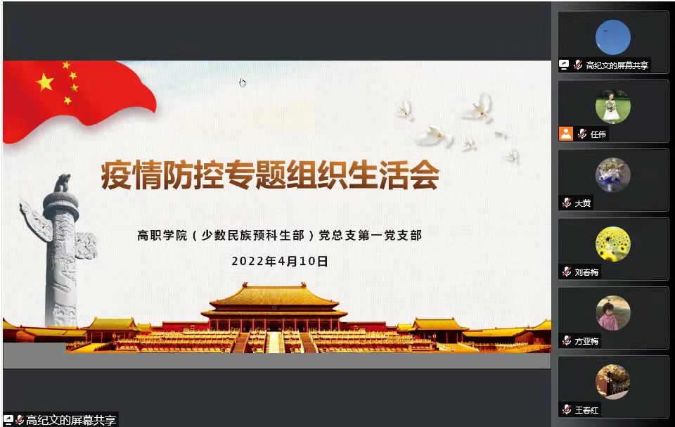 高职学院各党支部召开了线上疫情防控专题组织生活会,围绕近期疫情防控工作形势,组织学习了相关指示精神,号召各党支部要发挥战斗堡垒作用和党员先锋模范作用,凝聚众志成城、共克时艰的强大力量。第一党支部到社区报到的任伟老师、第二党支部辅导员王迪老师、第三党支部书记曹克澄老师、第四党支部“抗疫”小分队张新华同学,分别从岗位工作及参与志愿服务情况进行了交流。