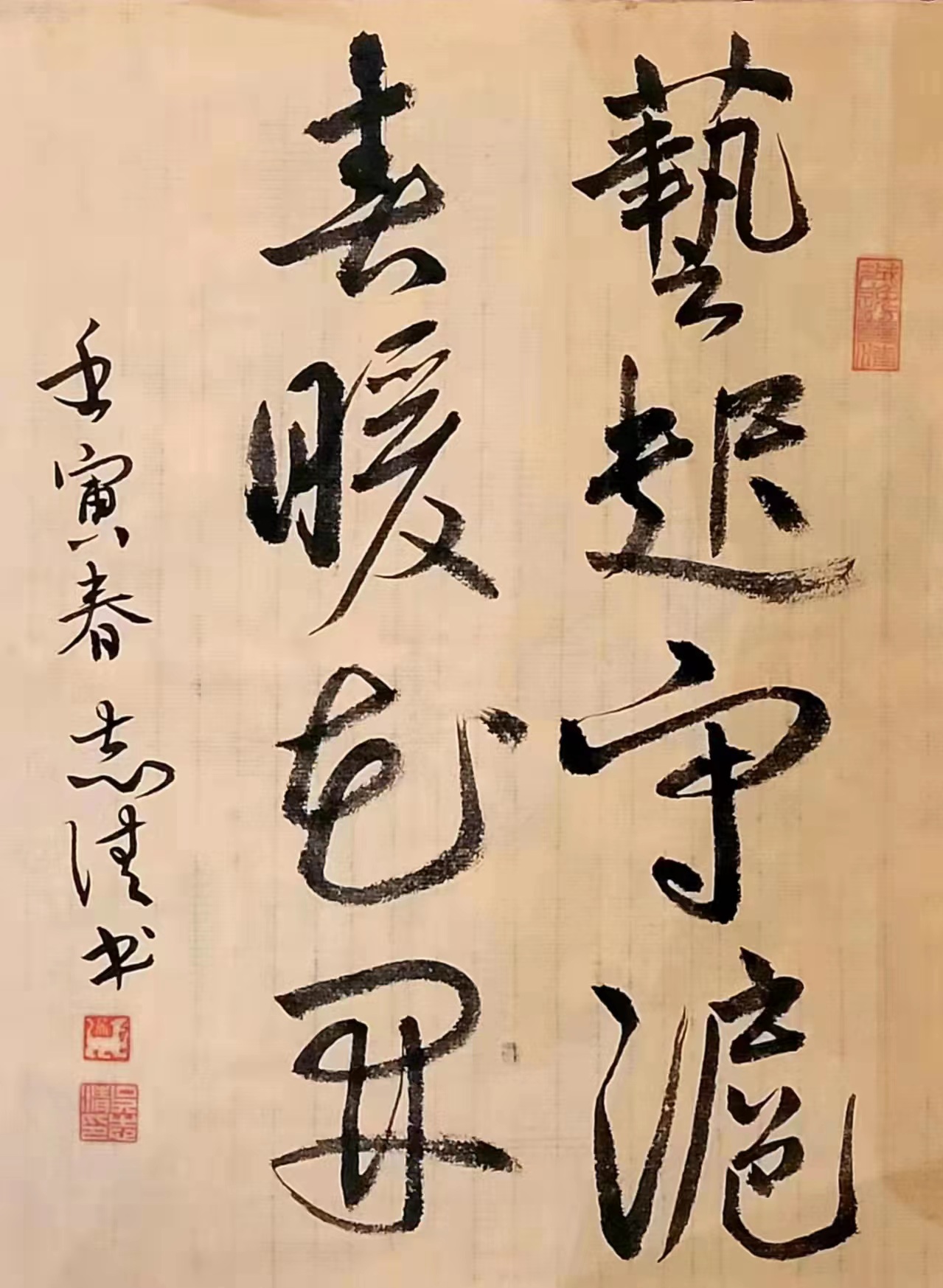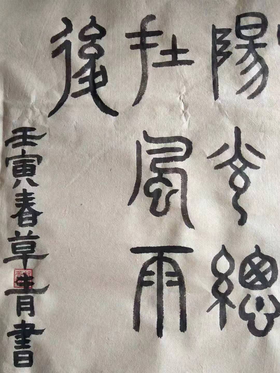 壬寅春,老干部吴志清居家战疫,耳闻目睹许许多多一线抗疫工作者的感人事迹,感慨万千,撰句以书,表达抗击疫情的坚定信心,传递美好春天定会重归申城必胜信念。