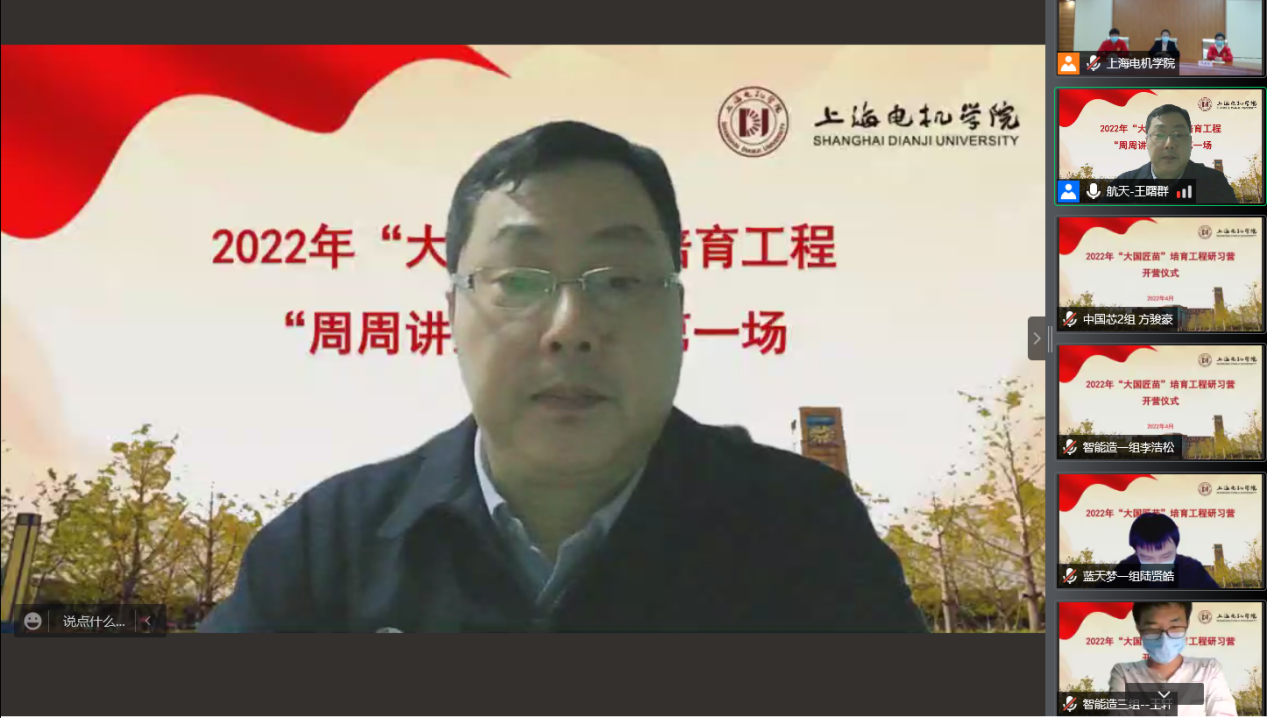 为进一步弘扬工匠精神、培育大国工匠,推动产教融合、加强校企合作,学校对标临港新片区智能制造产业学院、航空航天产业学院、集成电路产业学院的建设与发展,启动“智能造”“蓝天梦”“中国芯”首批三个研习营。4月23日18时,“大国匠苗”培育工程研习开营仪式暨2022年“周周讲进校园”首场讲座以线上线下相结合的形式正式开启。