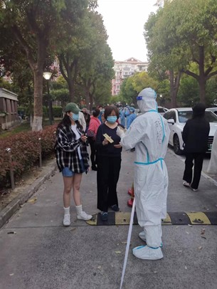 4月12日至13日,我所在小区接到了全员核酸检测的任务。前来负责核酸检测的是浙江省援沪医疗队台州中心医院的两名医生。此时恰逢上海启用全新的核酸检测登记系统,该检测登记系统与原先大家使用的健康云系统有较大差异,致使不少居民出现了“卡壳”情况。虽然我是小区志愿者队伍里年龄最小的,但这丝毫不能成为我胆怯的理由,“我可以,让我来!”。