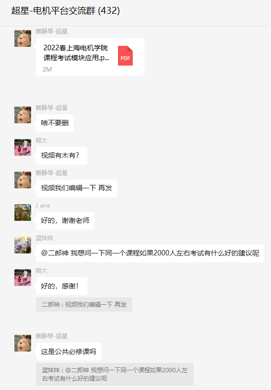 会议期间,教师们深度参与,从如何组卷、阅卷、预防学生作弊、监考以及遇到突发状况的应急解决方案等方面提出了200多条问题。平台技术人员对教师们的疑难问题作了详细解答。教务处组织平台工作人员建立了多个交流答疑群,发布平台操作手册以及注意事项,帮助教师们熟悉线上考试平台操作流程并进行后续跟进,以期为教师们提供更好的服务。
