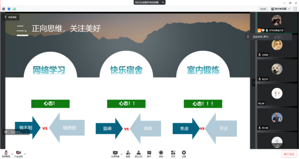 2. 心理健康教育主题线上班会积极开展。商学院大一各班结合疫情形势开展了“稳定自我,积极抗疫”心理健康教育主题线上班会,帮助同学们在做好身体防护的同时亦做好心理防护,稳定自我,照顾好自己的情绪。