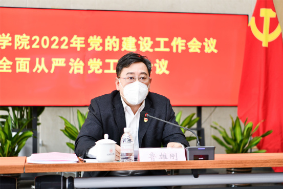 党委书记鲁雄刚代表学校党委作题为《聚焦主线奋发有为持续推动学校高质量发展》的大会报告。鲁雄刚在报告中全面总结了2021年学校党的建设工作重点任务、全面从严治党和学校改革发展方面取得的主要成绩和重要突破,并对2022年党的建设工作进行了全面部署。2022年学校党的建设工作要以迎接党的二十大、学习贯彻落实党的二十大精神为主线,压实学校党建工作政治责任,进一步推进全面从严治党向纵深发展,进一步推动学校思想政治工作守正创新,进一步统筹党的建设和学校事业发展深度融合,进一步严格落实上级党委关于学校疫情防控各项要求,确保师生健康、校园安全,增强决胜信心和责任担当。2022年学校党的建设工作要按照“质量党建、思想引领、精准防控、全员育人、系统推进”的工作思路,紧紧抓住统筹推进疫情防控和教育改革发展、以高质量党建引领学校事业高质量发展的总体工作要求,加强战略管理,全面推进学校党的建设工作,奋力促进学校事业高质量发展。2022年党的建设工作重点任务要突出强化主体责任,着力提高学校党的建设质量和水平;要强化思想引领,完善思想政治工作体系;要深化综合改革,探索形成产教融合发展模式,在奋进新时代的新征程上,构建学校发展新格局。