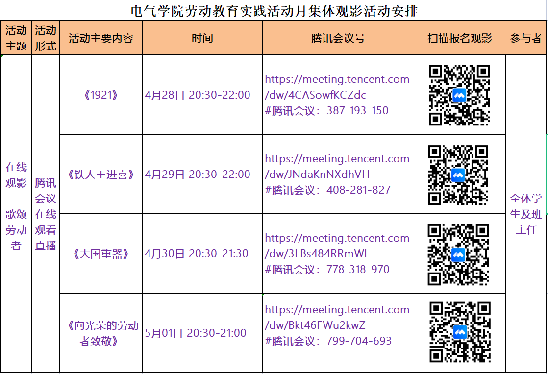 为进一步强化劳动教育,激发广大青年学生劳动热情,落实《电气学院2022年劳动教育实践活动月实施方案》工作。4月28日-5月1日,电气学院开展以“流金岁月 重温经典 向劳动者致敬”为主题的庆“五一”暨劳动教育实践月主题观影系列活动,利用五一期间带领同学们重温红色经典,回顾百年历程,观看大国重器,感受大国工匠精神和祖国强大。
