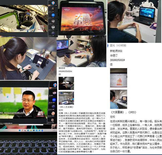 电气学院各年级本科生、研究生均参加,其中在校学生占69.8%,在家学生占29.8%,在单位实习学生占0.4%,通过云直播集体在线观看的形式开展。本次观影系列活动,选择了红色革命题材电影《1921》,劳动题材《向光荣的劳动者致敬》、《铁人王进喜》和科技题材《大国重器》。影片中,有的重现了100年前波澜壮阔、开天辟地的历史时刻。来自五湖四海、平均年龄仅28岁的青年们,怀着满腔热血聚聚上海召开中国共产党第一次全国大会,见证中国共产党的成立。向开辟新中国的革命先辈们致致敬,正是因为无数的开拓者们才有了新中国;显示的铁人是我们永远的榜样,永远的标杆,是我面对磨难时的精神支柱。让我们记住铁人,不断学习他的精神,向铁人致敬,成为可能的人物;还展示了普通的产业工人和装备制造业企业转型升级创新的关键人物,真实记录了他们的智慧、生活和梦想,通过人物故事和先进科技制造细节,鲜活地讲述了充满中国智慧的机器制造故事,展现了中国装备制造业从小到大到赶超世界先进水平背后的艰辛历程,展望了中国装备制造业迈向高端制造的未来前景。