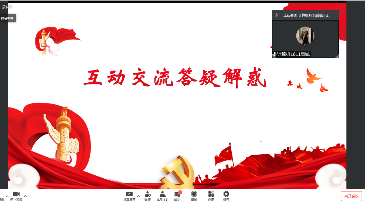 在互动交流环节,党员同学们纷纷表示会秉持电子信息学院的“信”文化,坚定信仰、坚守信念、增强信心、增进信任,努力成长为新时代堪当民族复兴重任的优秀毕业生。