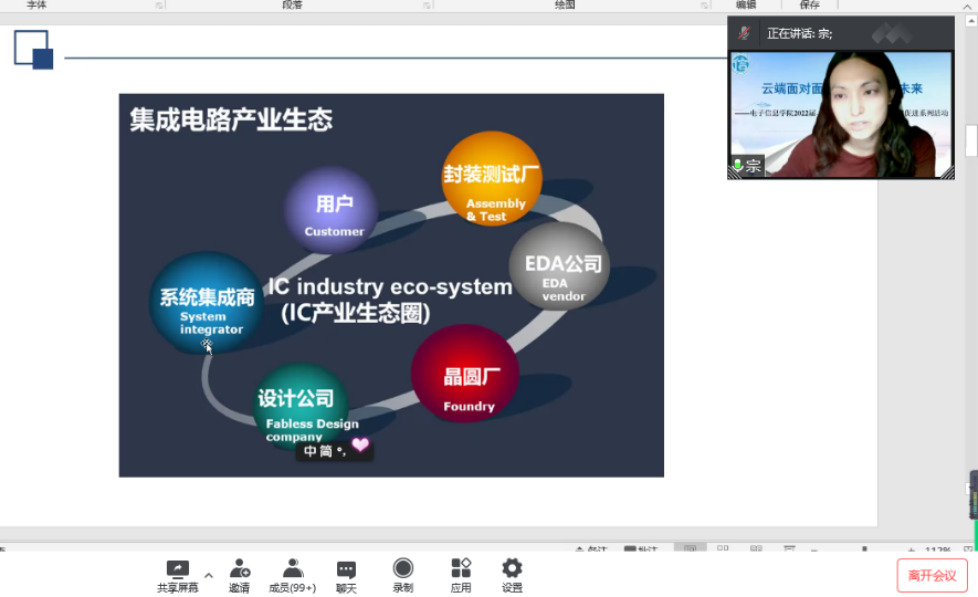 电子工程系专任教师宗兆翔结合自身工作经验,详细讲解了集成电路产业生态,深度剖析临港集成电路的千亿产业集群和巨大人才需求,提醒同学们在就业求职时有责任担当、多思考、多实践,成为拥有过硬本领、优秀品德修为的新时代中国青年。