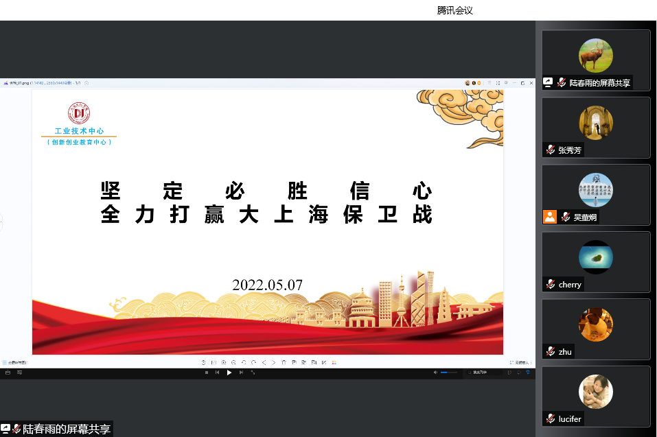 在目前上海疫情防控工作正处于“逆水行舟、不进则退”的关键时期和吃劲阶段,为了让工业技术中心全体教职工进一步把思想和行动统一到党中央、市委疫情防控决策部署上来,深刻、完整、全面认识疫情防控方针政策,避免麻痹思想、厌战情绪、侥幸心理、松劲心态的出现,工业技术中心于5月7日开展了中央和市委打赢大上海保卫战相关会议精神学习,会议由支委委员陆春雨主持,中心全体教职工线上参加了会议。