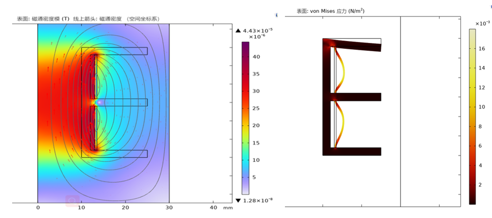 图 研究生进行的电磁场与力学耦合仿真结果
