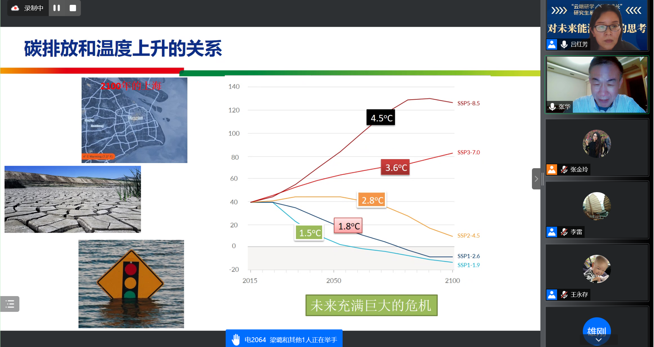 张华研究员从碳排放和温度上升的关系入手,在分析了大电网储能需求的基础上,提出大规模、长周期储能氢、氨是一个可行的方向,从微网发电、大电网发电、交通领域三个方面分析了氢氨燃气的应用前景,为研究生生动阐释了未来能源的发展方向。