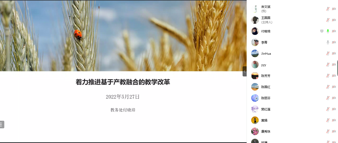 与会老师表示通过本次思享会,对产教融合的发展历程、内涵外延、架构形式有了深入的了解。高等数学教研室武文佳老师、工程数学教研室缪银凤老师、物理教研室赵华老师及金华老师、人文美育教研室段继红教授分别发言,表示将在今后的课程教学中积极树立产教融合的理念,寻找学科中的应用型因素,依托OBE理念,对标工程认证,从人才培养方案修订、教材编写、团队建设、大学生创新创业教育、基地建设等方面着手,努力推动产教融合理念下的教育教学改革。
