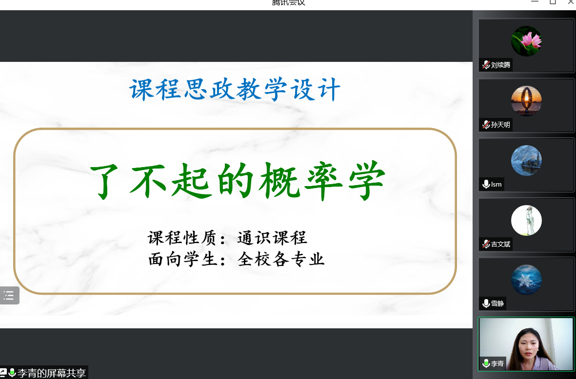 李青老师梳理了《了不起的概率学》中具有思政元素的教学素材,通过教学实例展示了如何巧妙化用概率学知识培养学生决策能力、引导学生树立正确价值观和人生态度的成功做法。