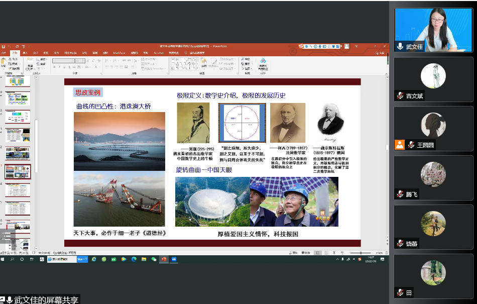 武文佳老师将《高等数学》课程具有思政价值的教学素材重构并建立课程思政教学资源库,探索出“两思结合、立德树人”的特色思政模式。