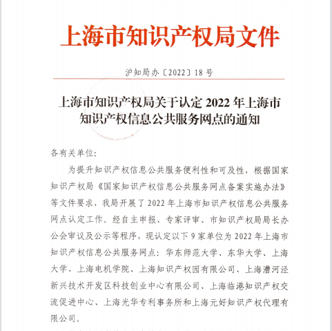 上海市知识产权信息公共服务网点遴选,旨在提升知识产权信息公共服务便利性和专业性,由上海市知识产权局组织实施,经审核并公示,最终确定9家知识产权公共服务机构为2022年上海市知识产权信息公共服务网点。(供稿:科技处)