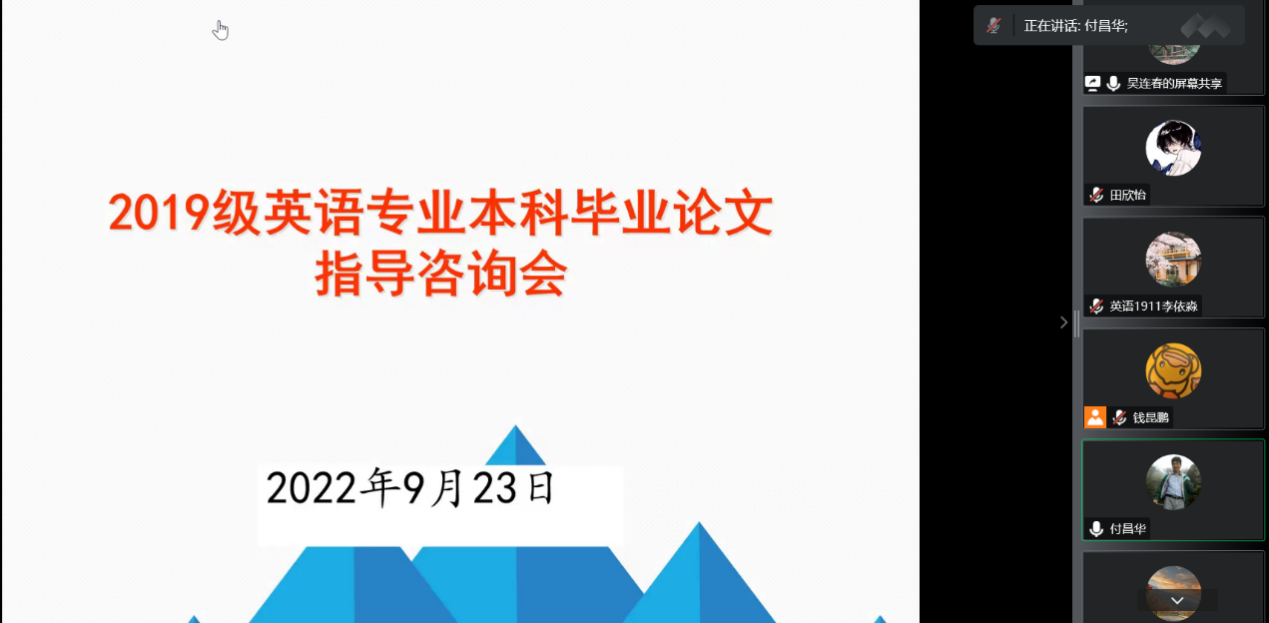 2022年9月23日外国语学院就业动员暨毕业论文指导动员会议在线上顺利开展,外国语学院院长张玉双,党总支副书记、副院长甄一捷,各系部主任、毕业班辅导员、2023届全体毕业生以及家长参加本次会议。