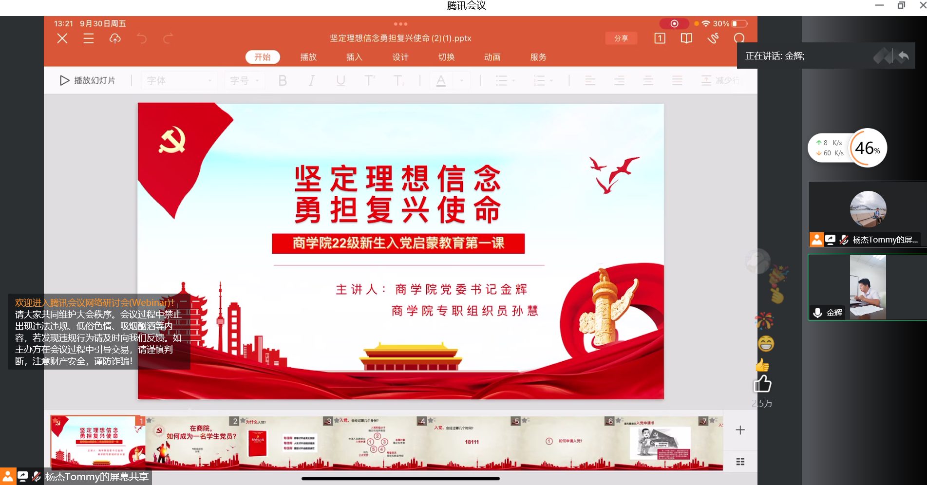 为激发学生的政治热情和入党意愿,强化对学生的理想信念教育,2022年9月30日下午,商学院面向全体2022级新生同学召开“坚定理想信念,勇担复兴使命”的入党启蒙教育专题党课。