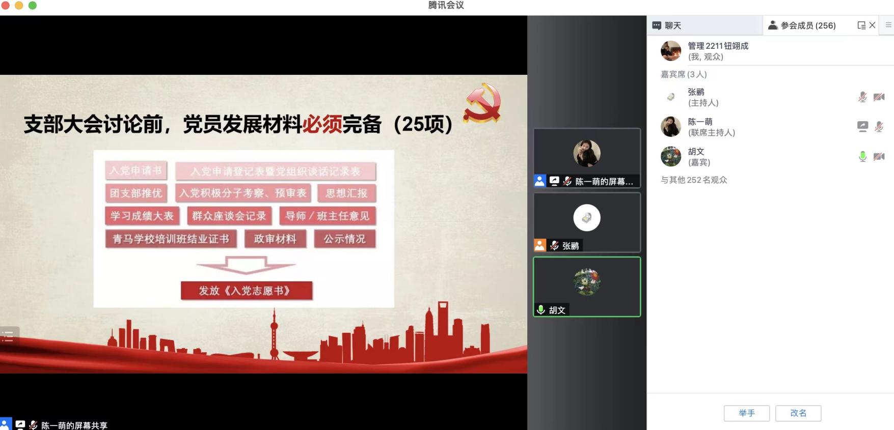 商学院专职组织员孙慧向同学们介绍了如何才能成为一名光荣的学生党员。孙慧老师指出,首先要明确自己为什么入党,其次成为一名正式党员,要经历入党申请、入党积极分子、发展对象、预备党员以及最后转为正式党员这五个身份。孙慧老师向新同学们分别介绍了各个身份期间需要做的事情以及要求,强调推荐优秀团员作为入党积极分子人选,是党赋予共青团组织的一项光荣职责;在积极分子被确定为发展对象后,要在实践中加强锻炼,自觉用党员的标准来规范自己的言行。