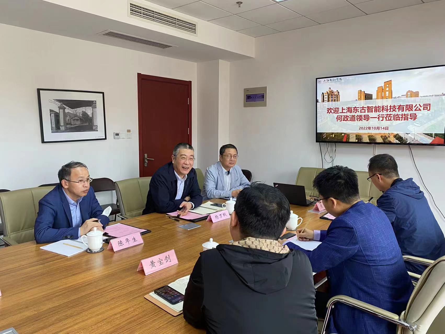 何政道董事长和航空产业学院筹备组先分别介绍了东古科技主要产品和上海电机学院航空产业学院筹备的相关工作。