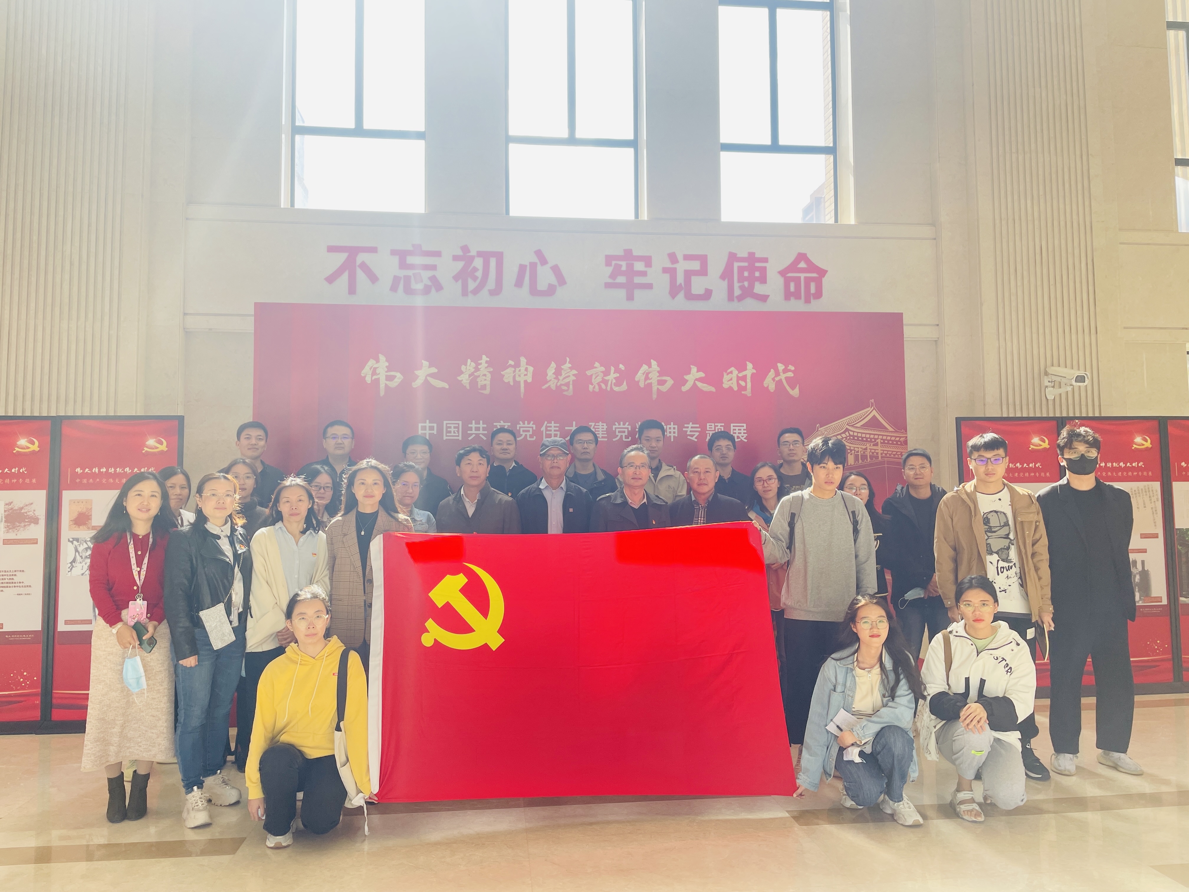 忆往昔,守初心,习近平总书记强调“走得再远都不能忘记来时的路”。本次活动首先参观“伟大精神铸就伟大时代”建党精神专题展。百年风华,人民史诗,伴随着讲解词全体党员学习了中国共产党发展历程中的大事、要事和发展历程中铸就的伟大精神。再次回望来时之路,学党史、悟思想,时刻以史为镜,扣紧自己的扣子。