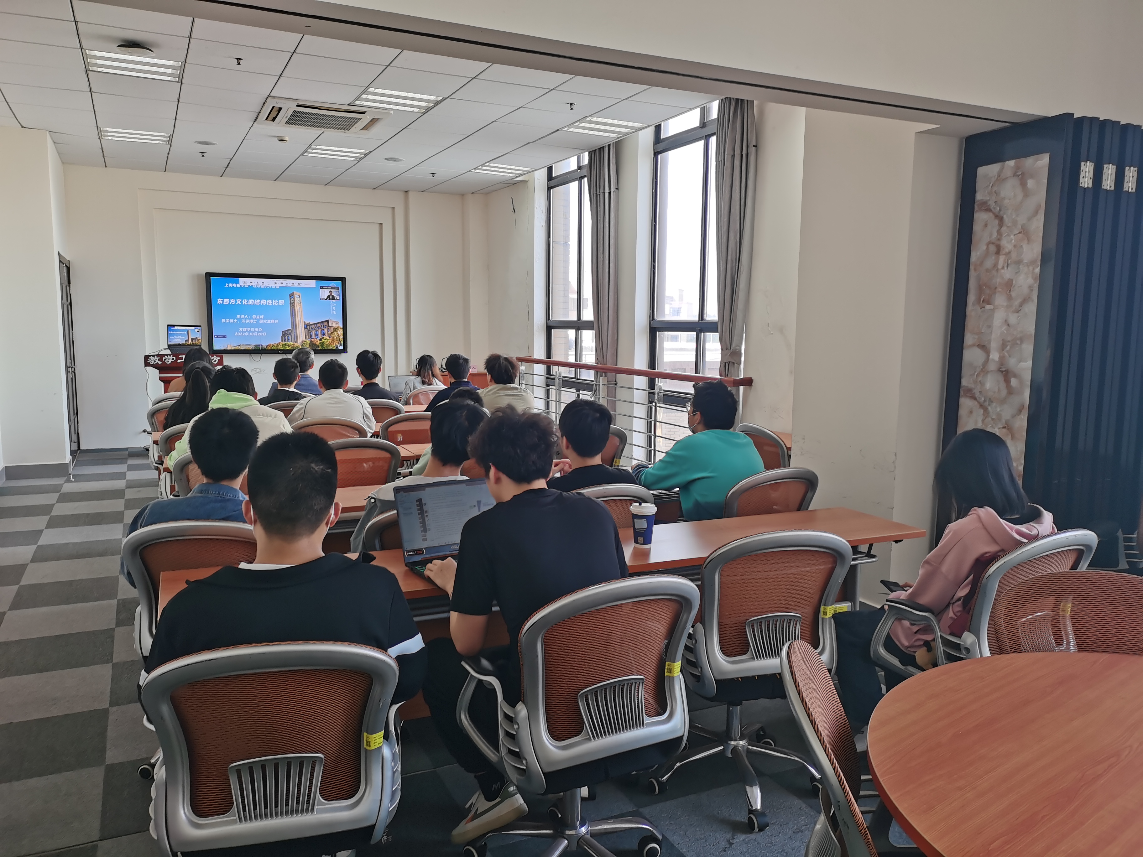 在学习党的二十大精神、喜迎校庆70周年之际,“月河通识大讲堂”第二场讲座于10月28日开讲。讲堂邀请上海戏剧学院原党委宣传部副部长包立峰博士作题为《东西方文化的结构性比照》的专题讲座。讲座由文理学院及材料学院共同承办,设现场主会场及线上会场,文理学院副院长吉文斌出席线下会场、田萍老师主持讲座,全校200余名师生参加活动。