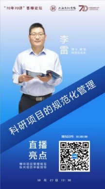 在党的二十大胜利闭幕之际,外国语学院于10月27日开启校庆“70年70讲”香樟论坛讲座第一讲,学院邀请科技处处长李雷教授做题为“科研项目的规范化管理”的专题讲座,学院党政班子和科研骨干教师共计20余人参加了线上线下同步论坛。