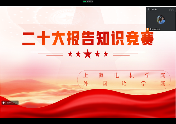 为深入学习宣传贯彻党的二十大精神,外国语学院党总支第四党支部于2022年10月27日开展了二十大报告知识竞赛活动,积极引导同学们深刻领会和把握大会的精神实质及丰富内涵,切实把思想和行动统一到党的二十大精神上来,奋斗新时代、奋进新征程、担当新使命。