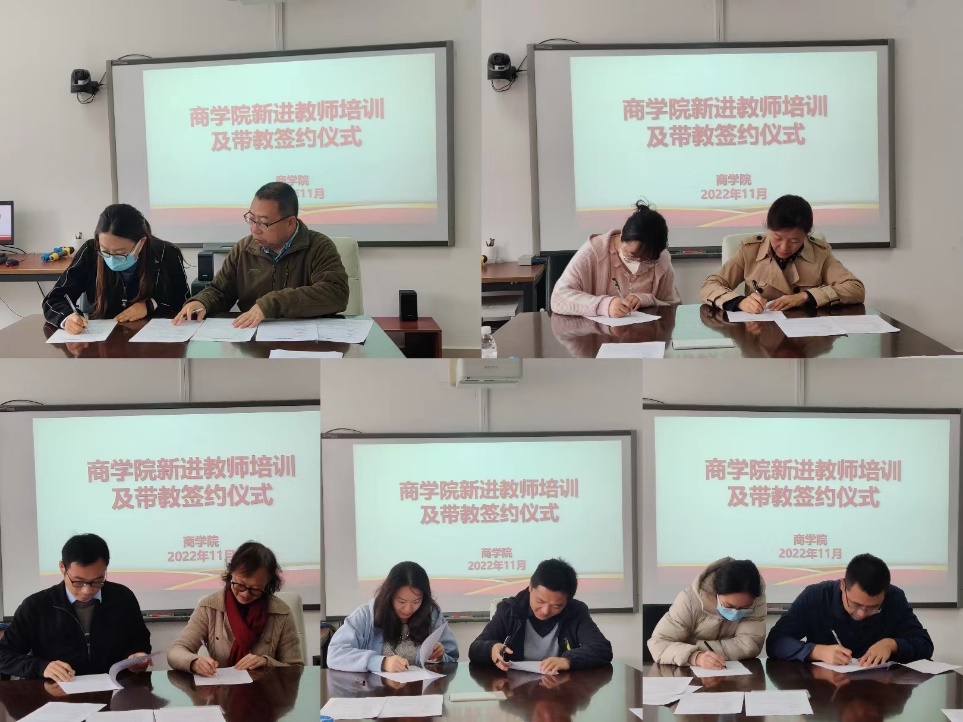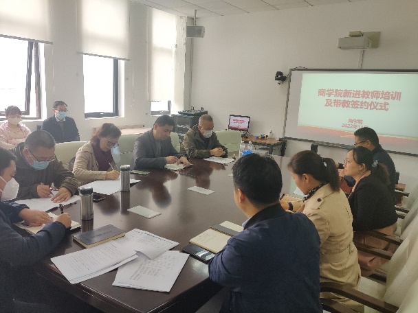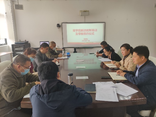 2022年11月15日,商学院举行2022年新进教师培训及带教签约仪式。商学院党政班子、教研室主任、2022年新进教师、相关三级机构负责人参加会议,副院长王玉芳主持会议。