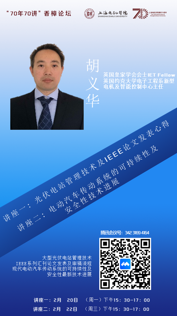 胡义华教授从事能量转换系统可靠性与安全性长达15年,其中新能源汽车电力传动系统的可靠性及安全性是近年来的主要研究方向。近5年从英国国家自然基金、英国皇家学会、英国皇家工程学会、欧盟H2020等机构获得项目资助共一百二十万英镑;发表论文在行业主流期刊IEEE Transaction系列汇刊总计112篇,其中第一作者及通信作者40余篇,顶级期刊IEEE Transaction on Power Electronics (TPE,一区)和 IEEE Transaction on Industrial Electronics (TIE,一区) 发表论文81篇(近五年排名世界第十,英国第一)。相关科研技术成果已经在多家国际知名公司成功应用,例如西门子,AVL,Williams工程,Dynex以及中车等。相关科研技术成果已经在多家国际知名公司成功应用,例如西门子,AVL,Williams工程,Dynex以及中车等。还担任专业主流国际期刊编委,例如IEEE TIE,Nature子刊,IET Intelligent Transport Systems 以及 IET Renewable Power Generation。