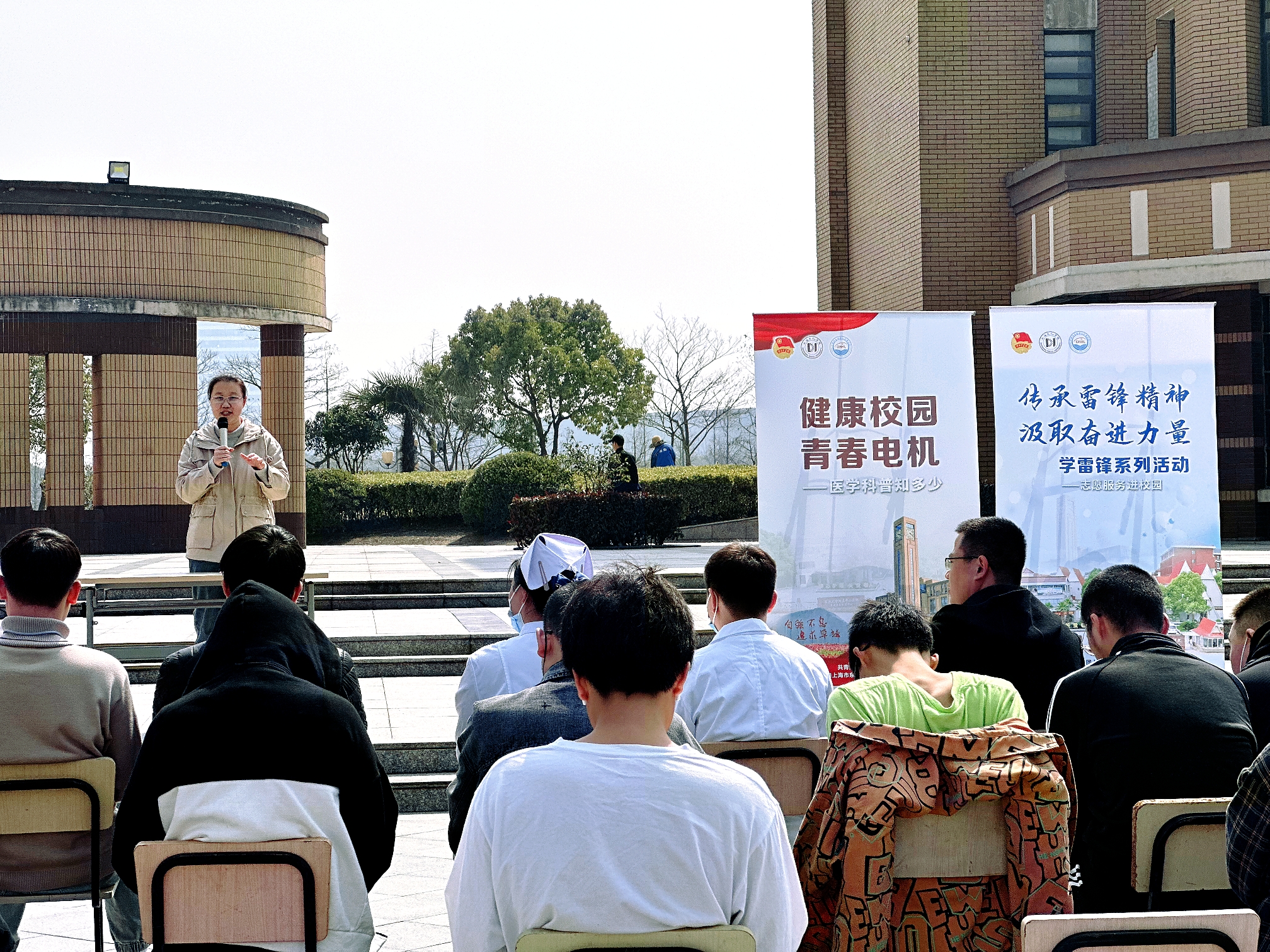 为学习宣传贯彻党的二十大精神,加强文明校园建设,推动“学雷锋月”活动走深走实,进一步普及健康知识、传播健康理念,校团委开展“健康校园、青春电机”系列活动。首场活动联合上海市东海老年护理医院,以“医学科普知多少”为主题,于3月9日下午在学生事务中心小广场举行,吸引了百名师生积极参与。